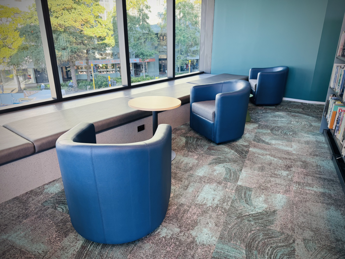 Heavy commercial Tub chairs made new in the Kadima workshop and covered in Textilia Vinyl and Maxwell Rogers New Zealand wool. Designed for constant public use these chairs feature throughout the library on all floors.